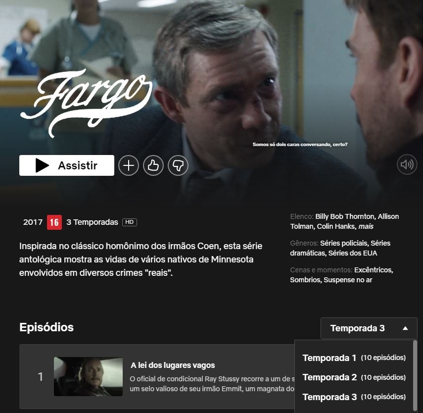 Johm poderia postar Fargo da NetFlix 3 temporadas + legendas…dinho está com muito trabalho para postar.
