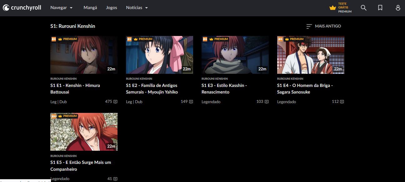Poderia trazer o anime novo samurai X da Crunchyroll, por favor tem 2 episódios dublados.
